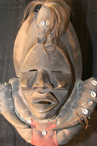 | Material: | Wood, Fabric, Cowrie Shells, Animal Hair, Horns. |