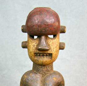 | Comments: | Fine Salampasu fetish figure. Shows extreme patination with signs of use and age. The main features of the Salampasu art, the red forehead, triangular nose, filed teeth, and raised kelloids are all demonstrated in this wonderful piece. |