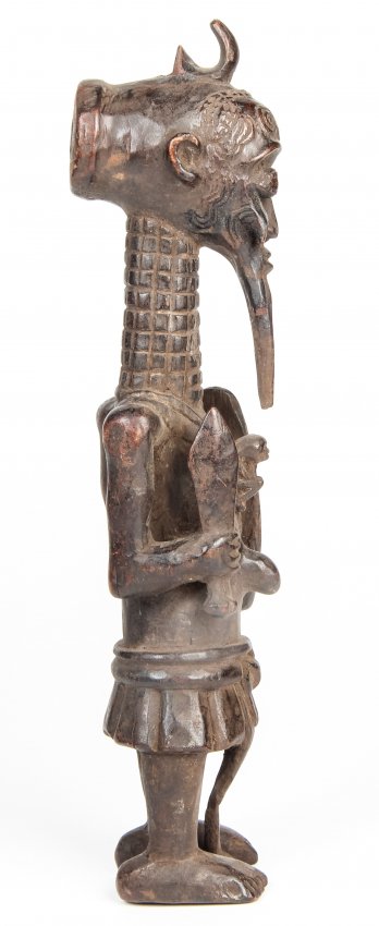 | Comments: | A very intricate representation of the Lulua warrior, depicting a high degree of scarification, head detail, beard, and the pointed navel surrounded by concentric circles that symbolize life. |